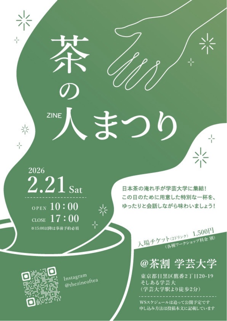 そんな疑問から淹れ手たちの姿を追いかけ、自費制作で生まれた雑誌『茶のZINE(ジン)』。その発刊記念イベント「茶の人まつり」が、2026年2月21日(土)、東京・学芸大学駅そばの「茶割 学芸大学」で開催されます。