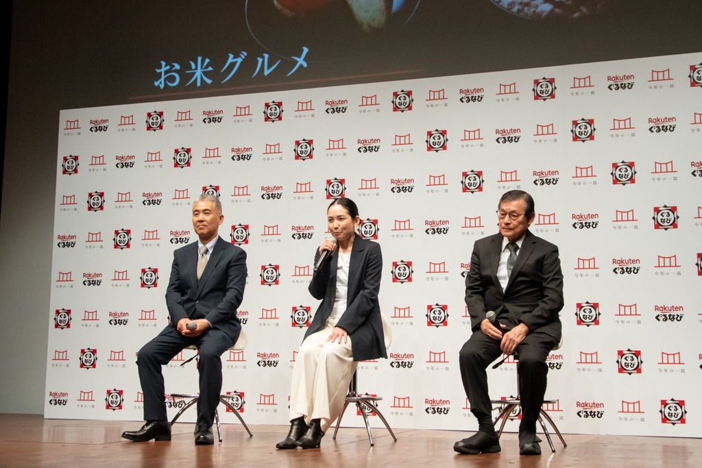 登壇したのは、東京・原宿「小池精米店」三代目店主で五ツ星お米マイスター・東京米スター匠の小池理雄さん、米・食味鑑定士やごはんソムリエ、お米ライターとして活動する柏木智帆さん、そして「農事組合法人おきす」代表理事の森脇康博さんの3名です。