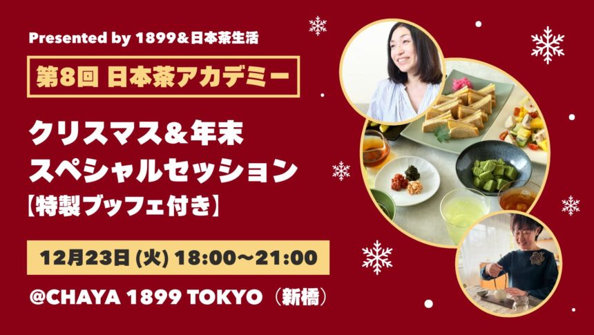 12月23日(火)に開催する第8回 日本茶アカデミーは、年末特別会としてお届けします。クリスマス前のひとときにふさわしい、学びと憩いを味わう特別な夜です。