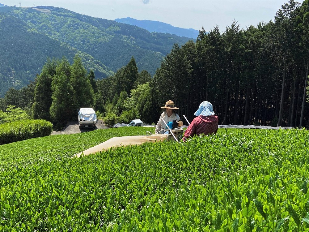 静岡市葵区楢尾(ならお)と呼ばれる標高約600mの山間地域で「本山(ほんやま)茶」を栽培・製造しています。 楢尾は寒暖差が大きく、朝晩は山霧がかかり、冬は雪がうっすら積もります。この気候風土が柔らかな芽を育み、濃厚な旨味と上品な香りを生み出します。おすすめの「楢尾のつゆひかり」は、”山のかぶせ茶”特有の強い旨味が魅力です。