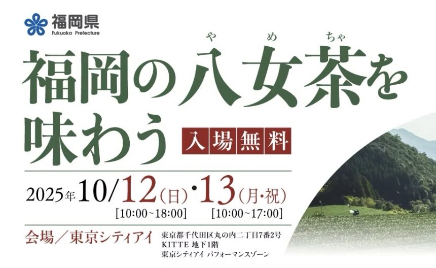 福岡県は2025年10月12日(日)、13日(月・祝)に、「福岡の八女茶」のPRイベント「福岡の八女茶を味わう」を東京駅直結の施設「東京シティアイ」で開催します。